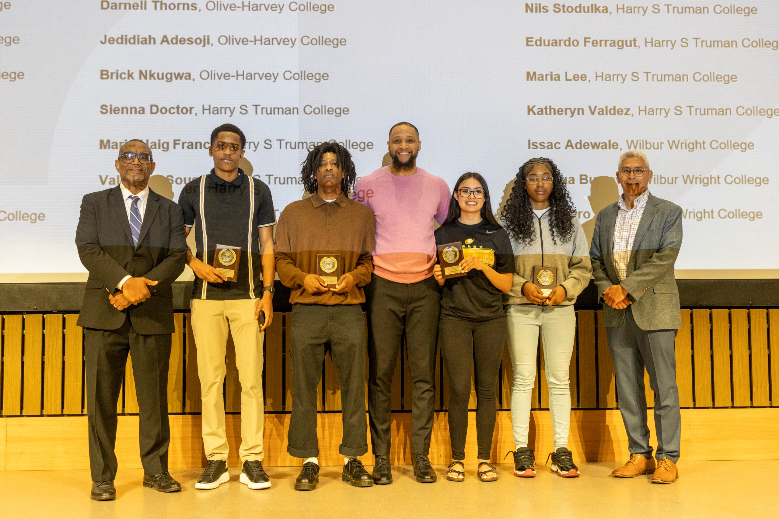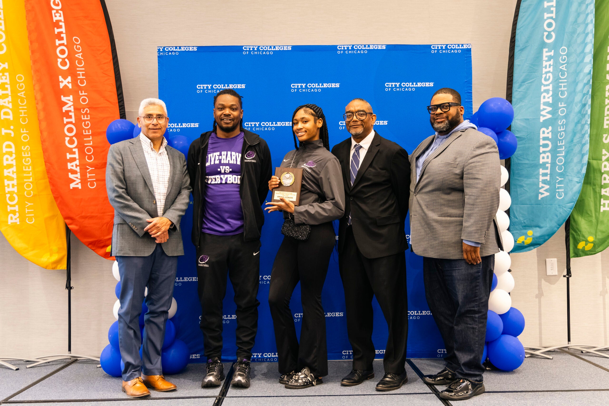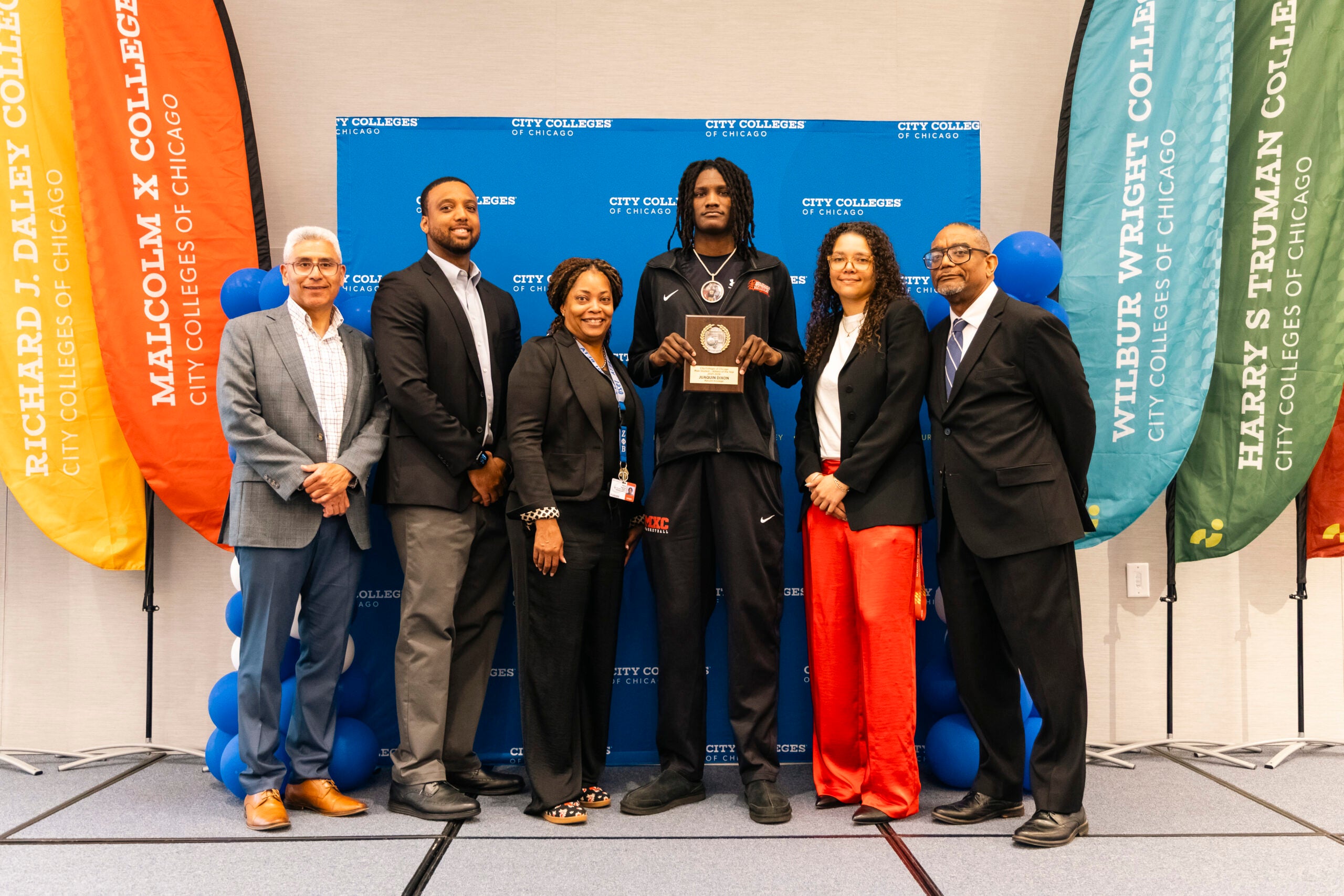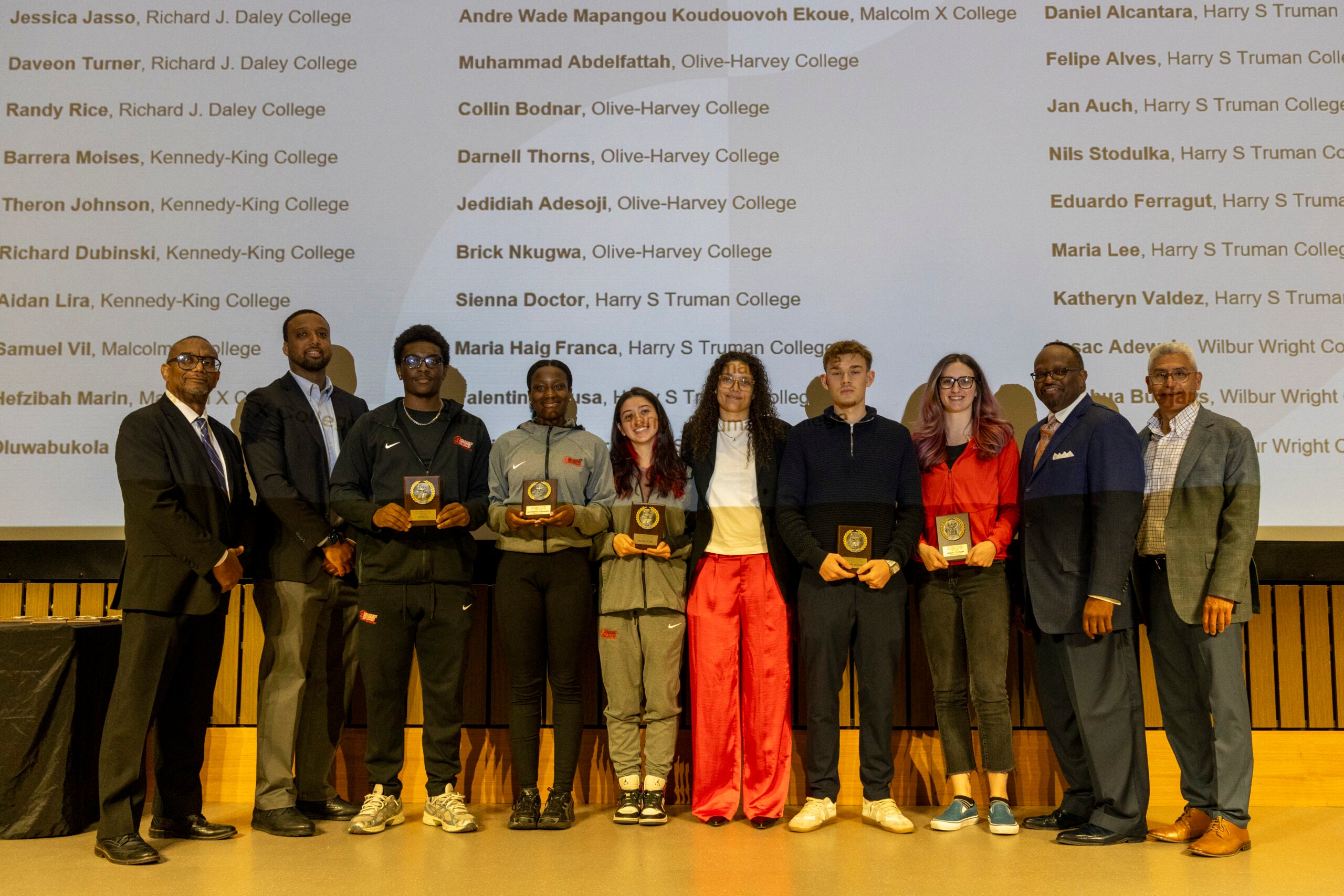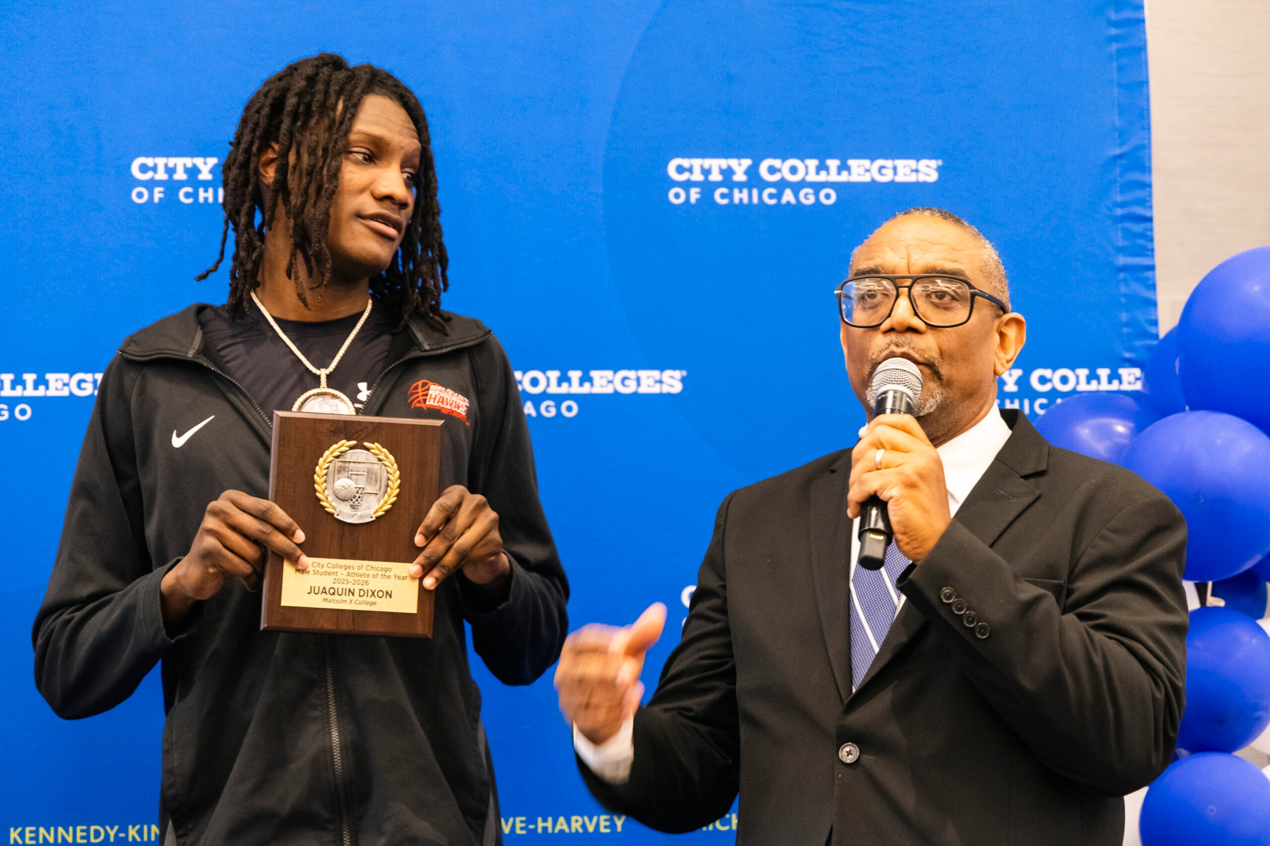 To honor two of these student athletes, the Student of the Year awards go to the top male and top female athlete who meet both academic standards and a superior level of athletic achievement. This year, the awards went to Ameria Leonard from Olive-Harvey College and Juaquin Dixon from Malcolm X College.